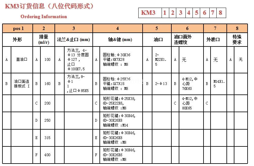 KM3 馬達(dá)工作參數(shù)表